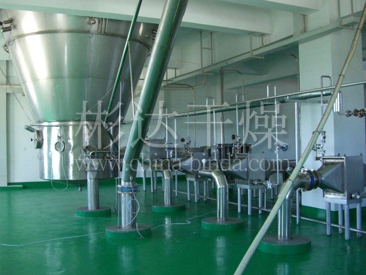 ??該生產(chǎn)線由供料系統(tǒng)、介質(zhì)循環(huán)系統(tǒng)、空氣加熱凈化系統(tǒng)、干燥塔系統(tǒng)、收料系統(tǒng)、控制系統(tǒng)等多個系統(tǒng)整合而成。主塔系統(tǒng)集中了目前噴霧干燥工程的技術(shù),噴干機(jī)組的收料系統(tǒng)由一級旋風(fēng)分離器+布袋除塵器組合形成。一級旋風(fēng)采用高氣量高效率旋風(fēng)進(jìn)行收集,其收粉率能達(dá)到96%左右,而布袋除塵器是針對蛋白粉類除塵專門設(shè)計的優(yōu)化設(shè)備,能使物料與風(fēng)進(jìn)行完全分離并沉降,布袋為拒水防油防靜電布袋,過濾目數(shù)可達(dá)500目以上。